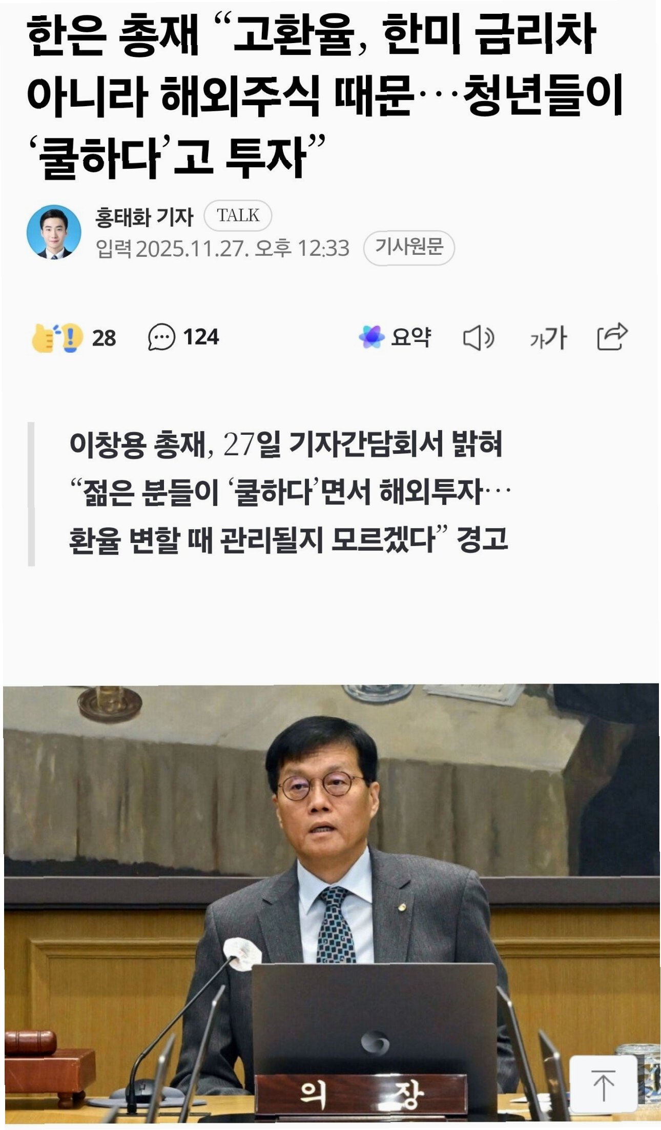 한국은행은 미국의 금리 인하를 기대하며, 금리 격차 축소를 통한 환율 안정을 모색하고 있습니다. 이창용 한국은행 총재는 미국의 금리 인하가 외환 시장에 긍정적인 효과를 가져올 것으로 전망했습니다. 미국의 금리 인하는 금리 격차를 줄여 원화 가치 하락을 완화하고, 환율 안정을 유도할 수 있습니다. 하지만, 미국의 금리 인하 시점과 속도는 예측하기 어려우므로, 투자자들은 다양한 시나리오에 대비해야 합니다.