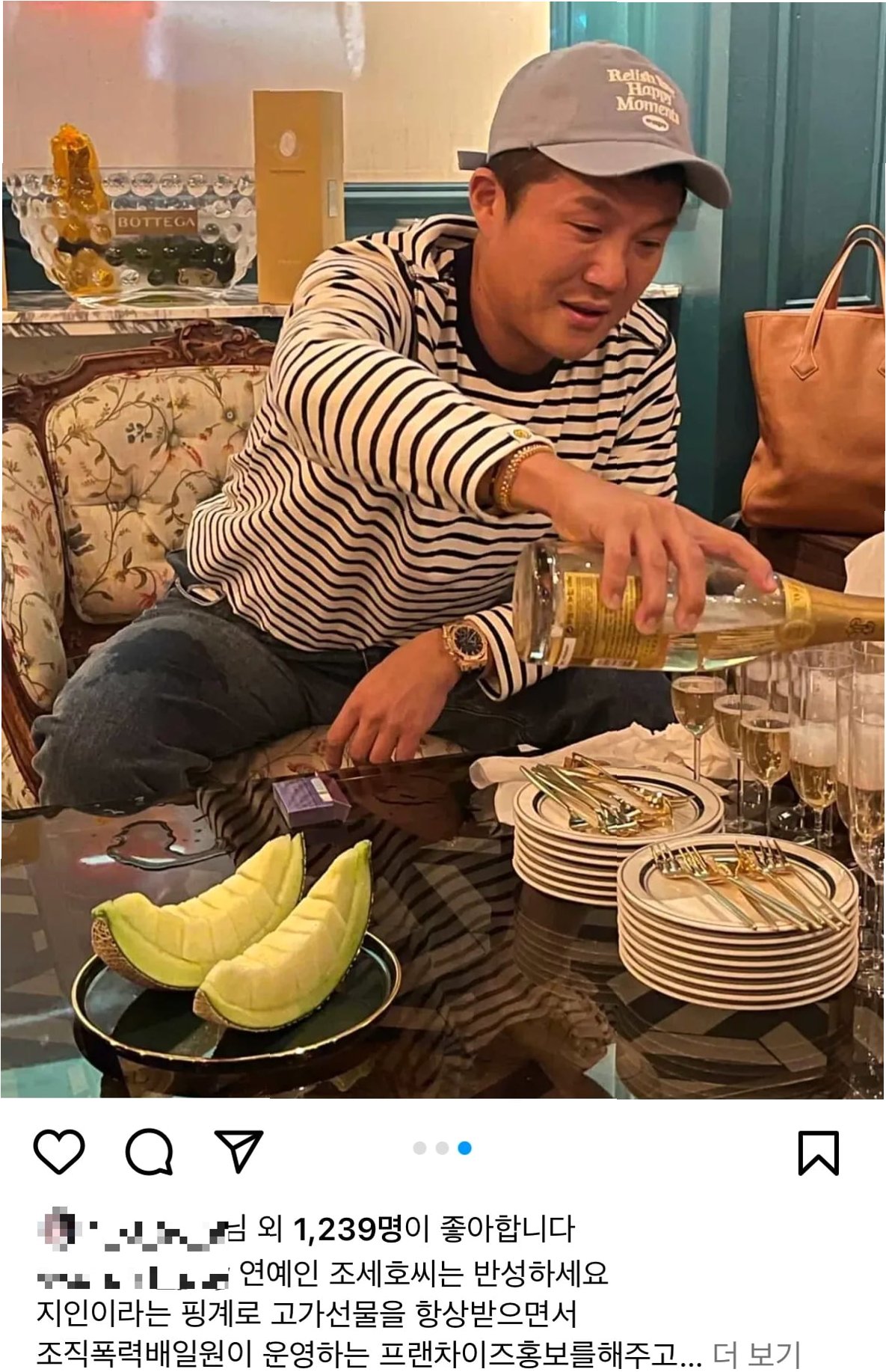 사건의 발단은 한 네티즌의 SNS 폭로였다. 해당 네티즌은 조세호가 지인이라는 핑계로 고가의 선물을 받고, 조직폭력배 일원이 운영하는 프랜차이즈를 홍보했으며, 거창 지역 최대 폭력 조직 실세 A 씨와 어울려 술을 마셨다고 주장했다. 특히, A 씨가 불법 도박 사이트 운영 및 자금 세탁 혐의를 받고 있다는 점에서, 조세호의 연루 의혹은 더욱 심화되고 있다. 이와 관련해 조세호와 A 씨가 함께 찍은 사진이 공개되며 논란은 더욱 커졌다.