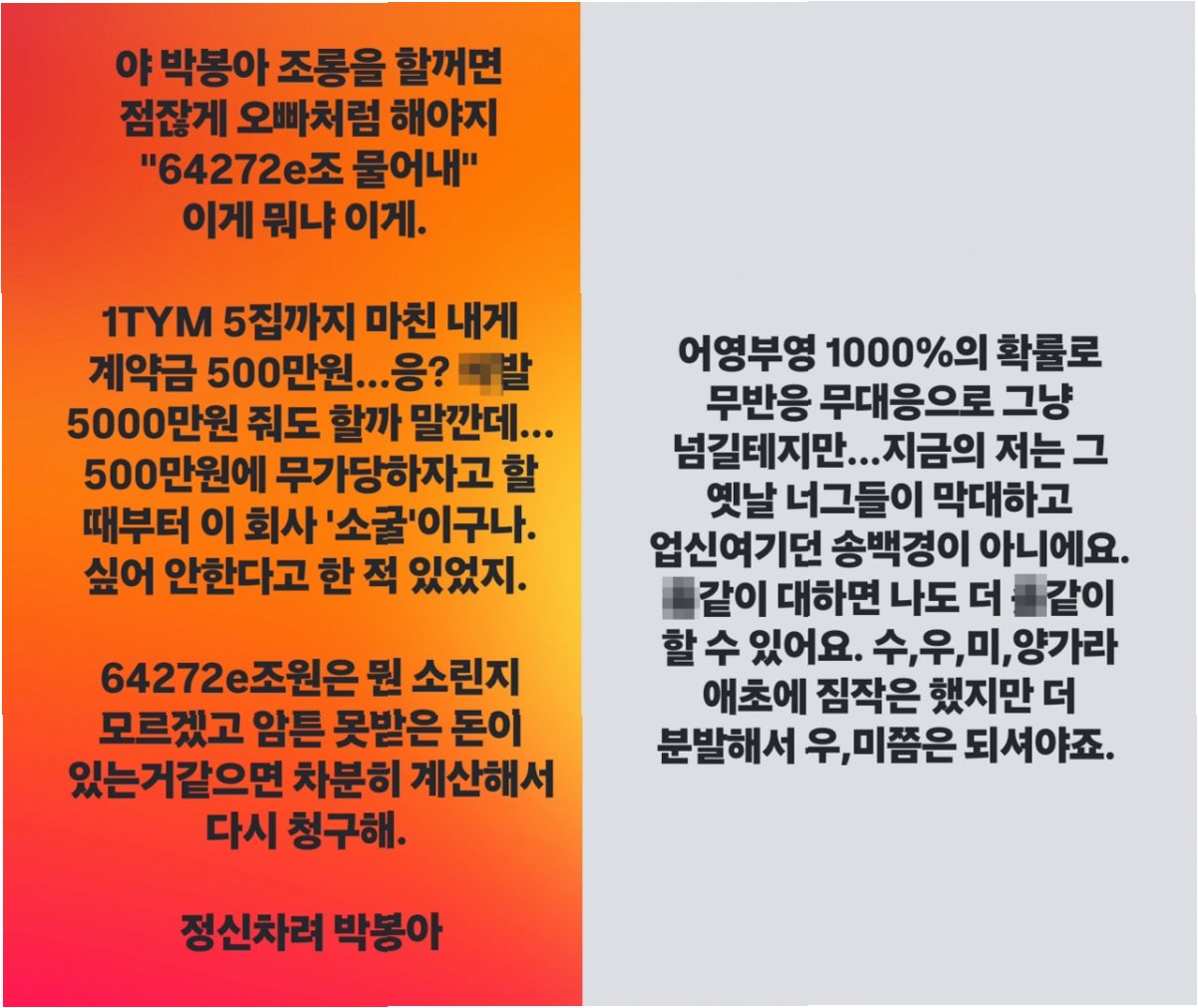 YG에 대한 송백경의 강도 높은 비난