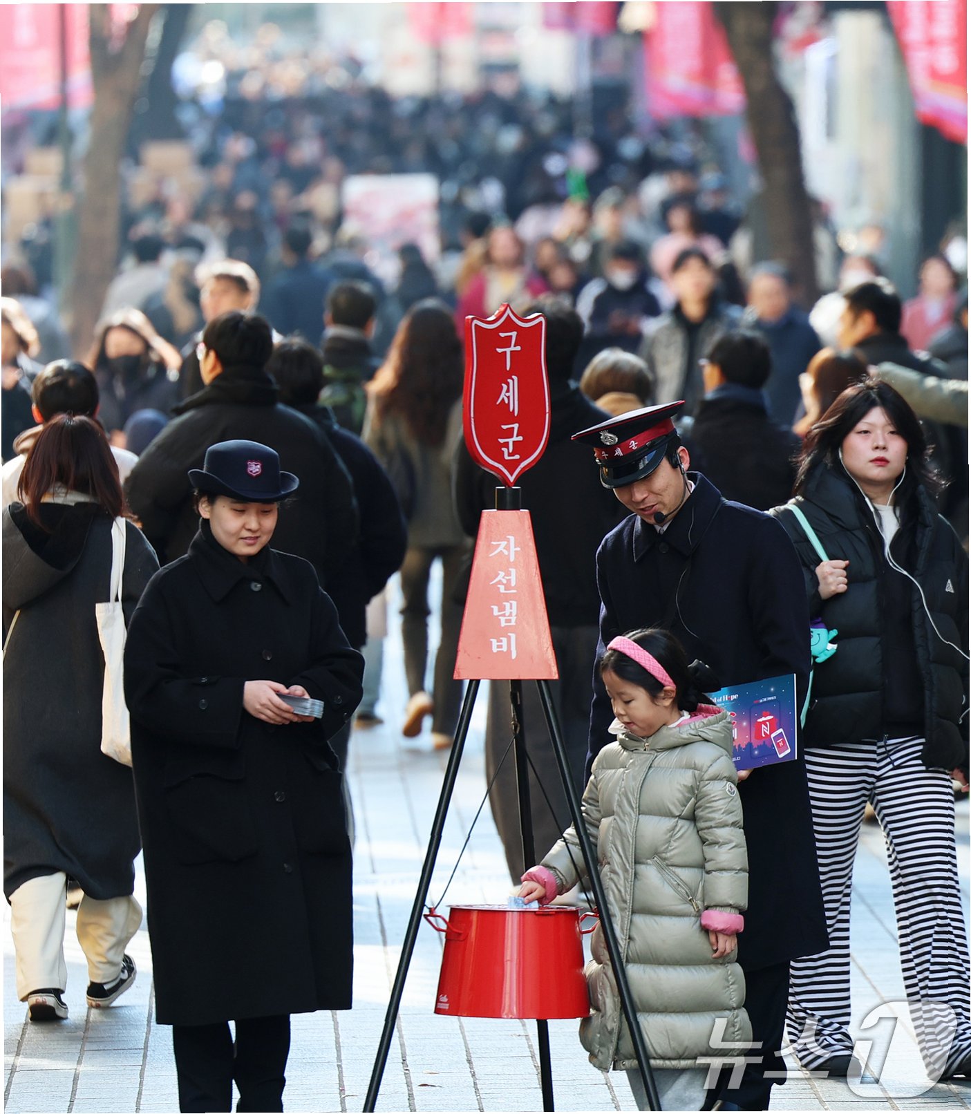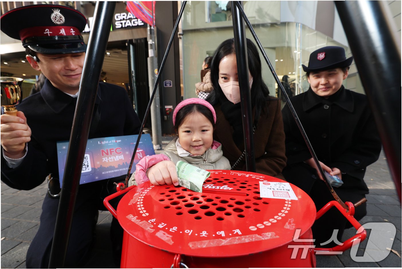 영등포역 자선냄비 앞, 한 여성의 따뜻한 기부