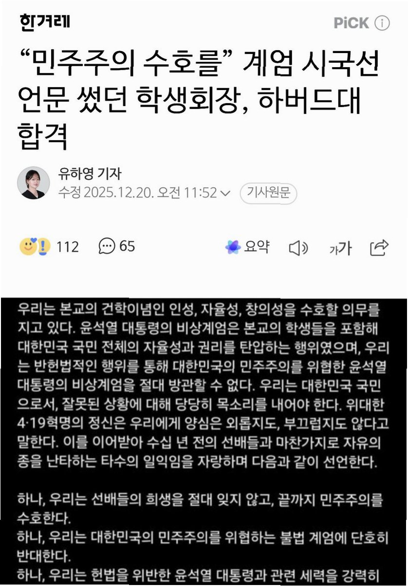 지난해 대한민국을 뜨겁게 달궜던 '비상계엄 선포' 시국선언의 주역, 용인 한국외국어대학교 부설 고등학교(용인외대부고) 학생회장 황준호 군이 꿈에 그리던 하버드대학교 합격 소식을 전했습니다. 2026학년도 미국 대학 조기결정 전형(Early Decision)을 통해 당당히 합격한 황 군의 소식은 많은 이들에게 깊은 감동과 희망을 선사하고 있습니다. 그의 눈부신 성과는 단순히 개인의 성공을 넘어, 용감한 외침이 세상을 바꿀 수 있다는 것을 보여주는 생생한 증거입니다.