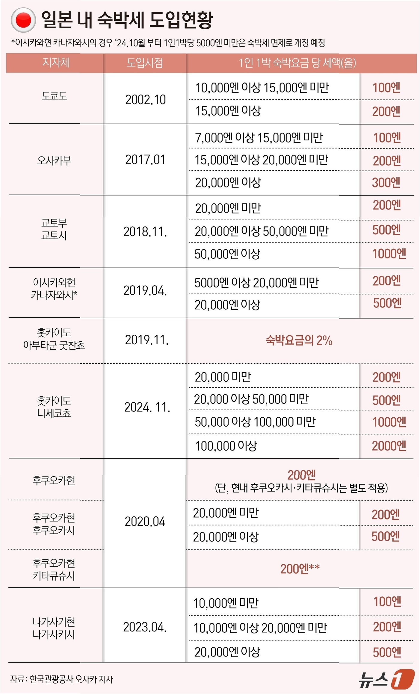 숙박 요금 하락, 일본 전역으로 확산