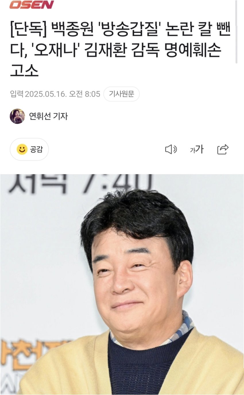 백종원, '제보자 색출' 보도 반박 승소: 허위 보도에 3천만 원 배상 판결