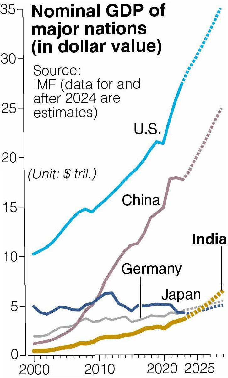 지난해 일본의 명목 GDP 총액은 4조1,869억 달러로 세계 4위(미국·중국·독일 다음)를 기록했습니다. 이는 일본 경제가 여전히 세계 경제에서 중요한 위치를 차지하고 있음을 의미합니다. 그러나, 4위 유지는 2022년 3위에서 독일에 밀린 이후 변동 없는 상황이며, 1인당 GDP 순위 하락과 같은 어두운 그림자를 드리우고 있습니다. 명목 GDP 순위 유지가 일본 경제의 모든 문제를 가릴 수는 없습니다. 오히려, 1인당 GDP 감소는 일본 경제의 구조적 문제를 더욱 부각시키는 지표입니다. 세계 4위라는 지위는 유지하고 있지만, 그 내면에는 심각한 문제들이 자리 잡고 있다는 사실을 간과해서는 안 됩니다. 이러한 문제들을 해결하기 위한 근본적인 변화와 노력이 필요합니다.