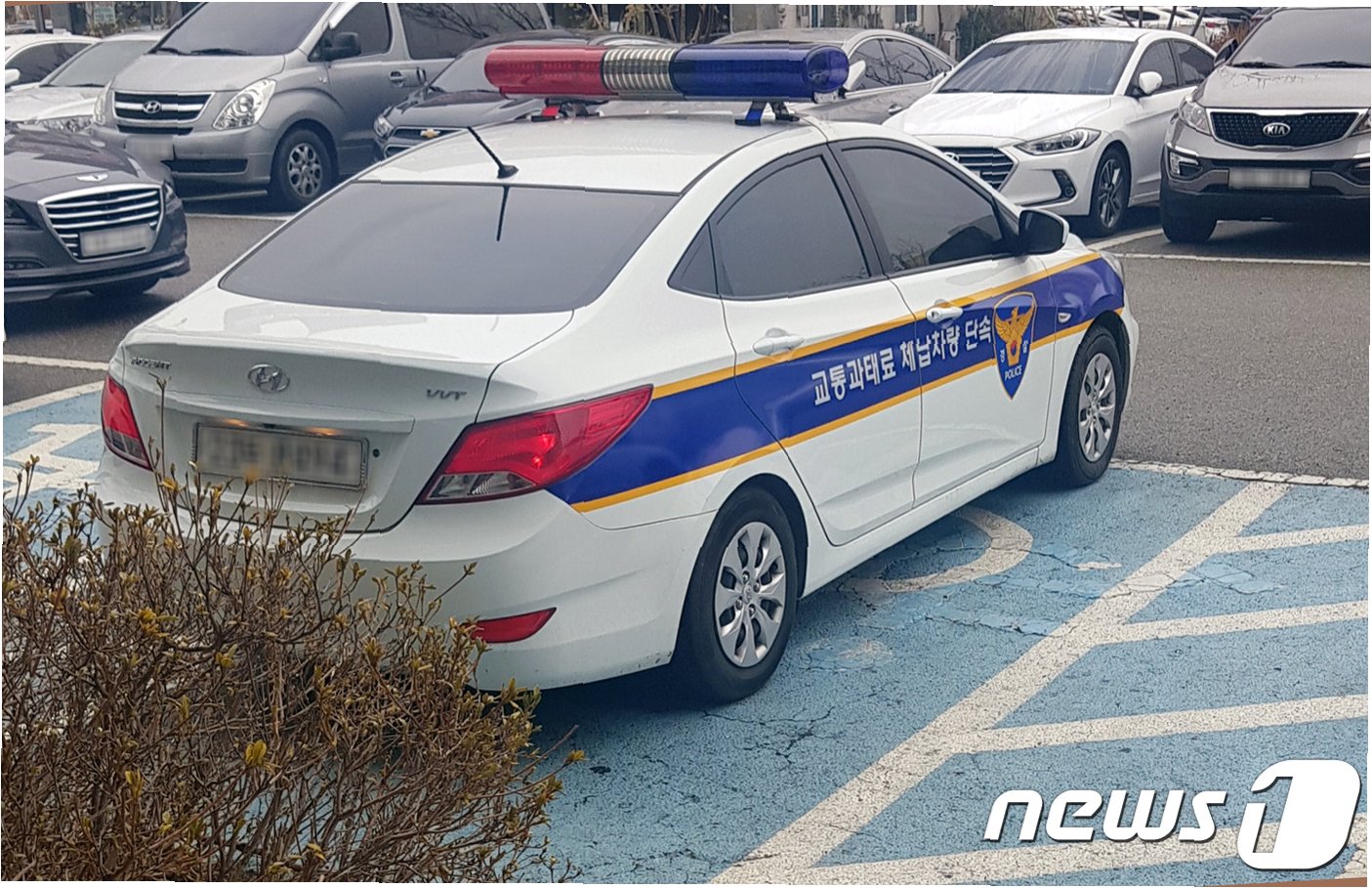 A.경찰은 물피 뺑소니 신고를 받고 긴급 출동하는 과정에서 장애인전용주차구역에 주차하게 되었다고 해명했습니다.