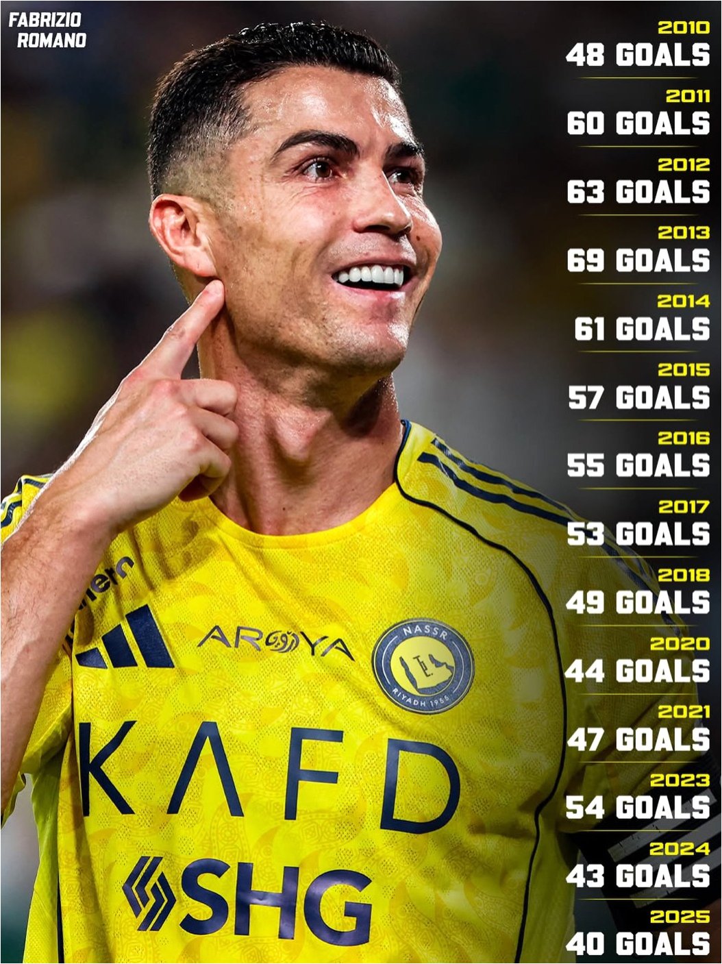 호날두는 알 나스르 이적 후에도 득점 본능을 유감없이 발휘하며, 2023/24 시즌 사우디 프로페셔널리그 단일 시즌 최다 득점 신기록을 세웠습니다. 2024/25 시즌 역시 30경기 25골 3도움을 기록하며 꾸준한 활약을 이어갔죠. 이번 시즌에도 리그 10경기에서 12골 1도움을 기록하며, 개인 통산 956골을 달성했습니다. 그의 놀라운 기록 행진은 팬들에게 끊임없는 기대감을 선사하고 있습니다.