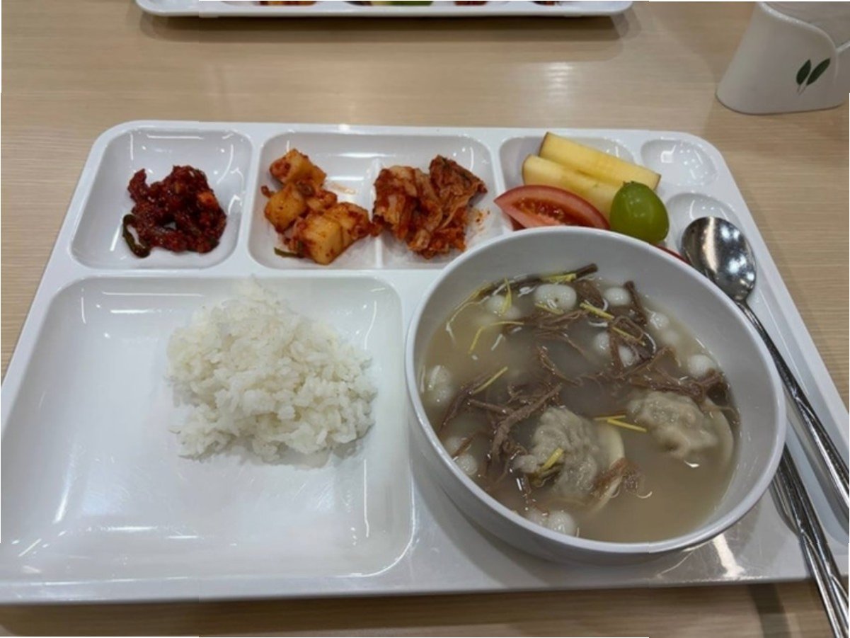 새해 첫 식사 메뉴는 따뜻한 떡국이었습니다떡국은 한국인에게 새해의 시작을 알리는 대표적인 음식으로, 건강과 번영을 기원하는 의미를 담고 있습니다. 사진 속 식판에는 떡국과 함께 쌀밥, 김치, 과일 등 정갈한 음식들이 함께 차려졌습니다. 특히, 떡국에 곁들여진 만두는 풍성함과 든든함을 더하며, 새해의 희망찬 출발을 상징하는 듯했습니다. 이러한 소박하지만 정성스러운 식사는 국가의 안녕과 발전을 기원하는 마음을 보여주는 듯했습니다.