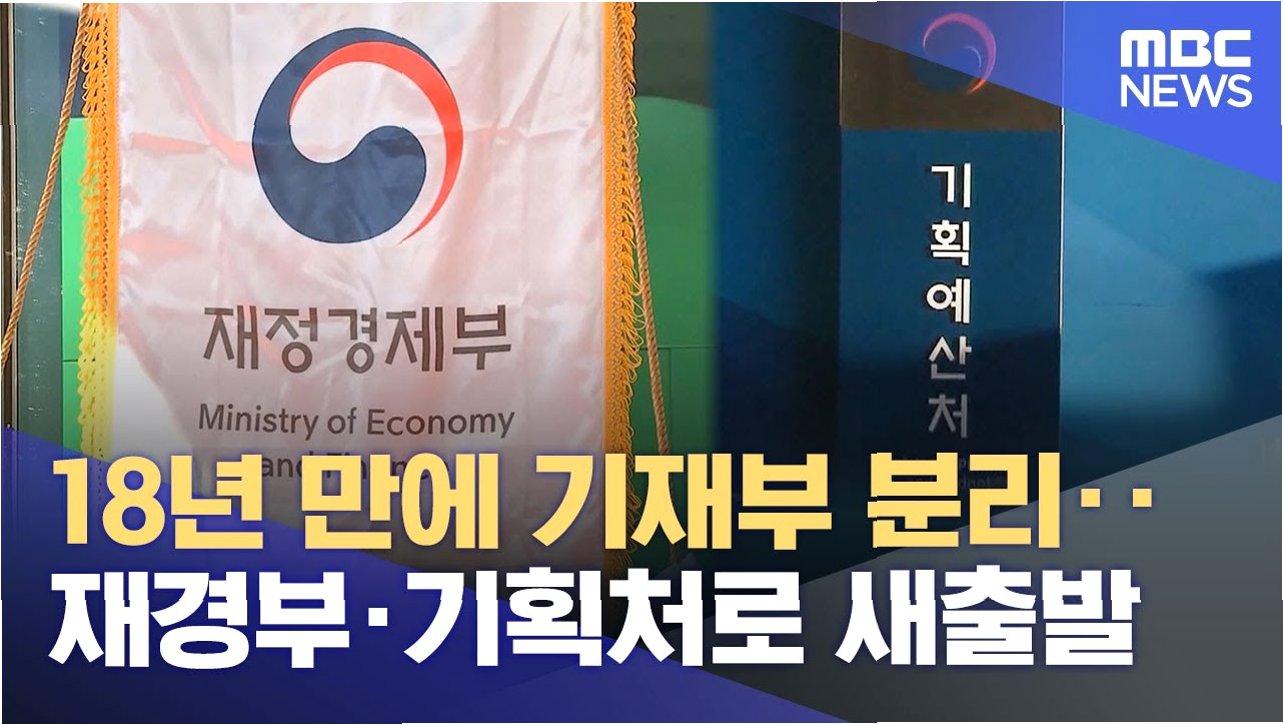 어제, 기획재정부가 사라졌습니다. 명실상부 '넘버 원' 부처였던 기재부가 문을 닫았습니다. 대신 재정경제부(약칭 '재경부')와 기획예산처(약칭 '기획처')가 출범했습니다. 지난 2008년 재정경제부와 기획예산처가 하나로 합쳐진 결과가 기획재정부였는데, 18년 만에 다시 쪼개졌습니다.