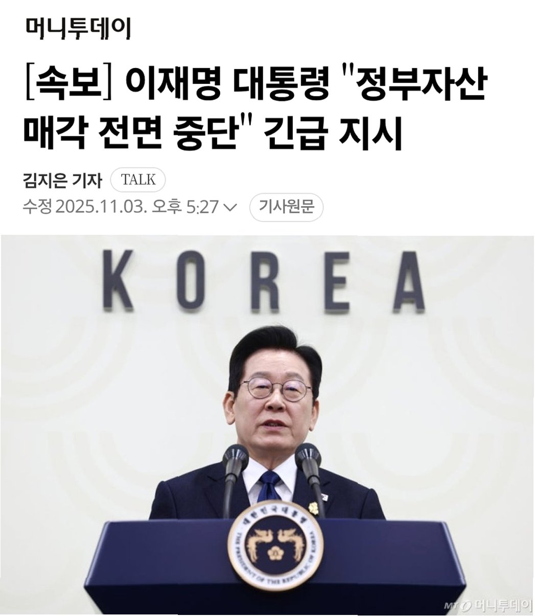 국유자산 매각 중단: 이재명 대통령의 긴급 지시