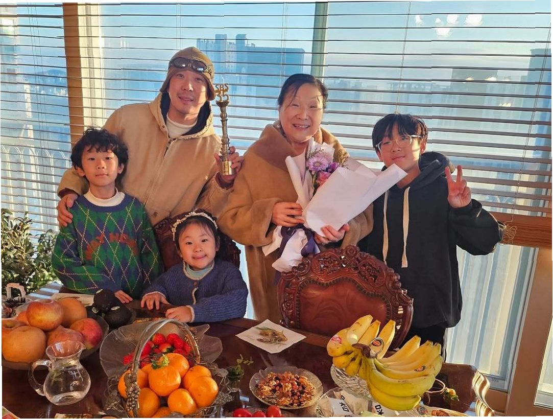 A.융드옥정 여사는 아들이 받은 트로피를 들고 환하게 미소 지으며, 손자, 손녀, 며느리와 함께 화목한 시간을 보냈습니다. 밝은 모습으로 행복한 근황을 전했습니다.
