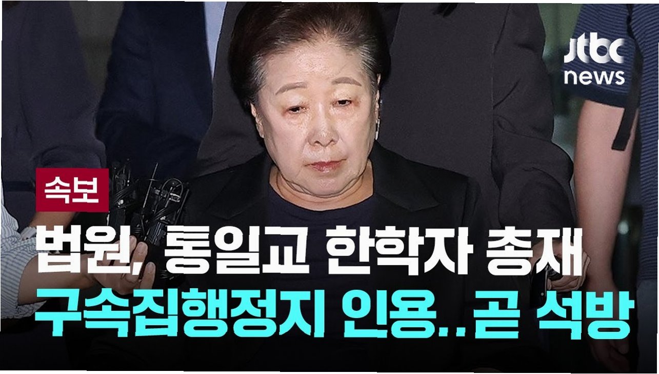 한학자 통일교 총재가 구속집행정지 결정을 받아 7일까지 일시 석방되었습니다법원은 한 총재의 건강 상태를 고려하여 이 같은 결정을 내렸습니다. 이번 석방은 피고인에게 중병이나 긴급한 사유가 있을 때 일시적으로 석방하는 제도로, 보석과는 달리 보증금 납부 조건이 없습니다. 통일교 측은 한 총재가 석방 기간 동안 병원 치료를 받을 것이라고 밝혔습니다.