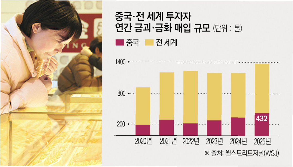국제 금융 시장에서 엔화의 와타나베 부인, 달러의 스미스 부인, 유로화의 소피아 부인에 버금가는 새로운 '큰손' 집단이 등장했습니다. 바로 중국의 '다마부대', 즉 중장년 주부들을 중심으로 한 아줌마 부대입니다. 이들은 자국의 저금리를 피해 해외로 자금을 돌리는 투자자 집단을 의미하며, 최근 국제 금 시장을 요동치게 만들고 있습니다. 월스트리트저널은 중국 개인 투자자, 특히 중장년 주부들이 금과 은을 집중적으로 사들이면서 귀금속 시장의 변동성이 확대되고 있다고 분석했습니다. 실제로 지난해 중국 투자자들이 사들인 금괴와 금화는 약 432톤으로, 1년 전보다 28% 급증하며 전 세계 구매량의 3분의 1 가까이를 차지했습니다.