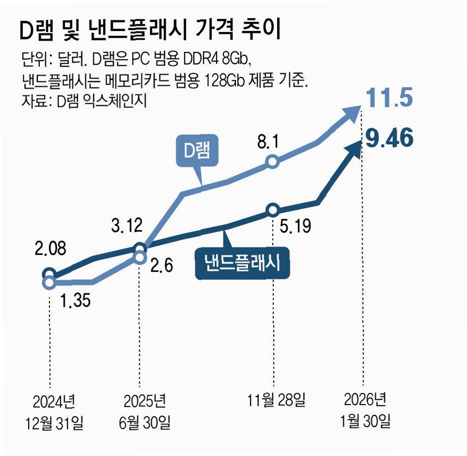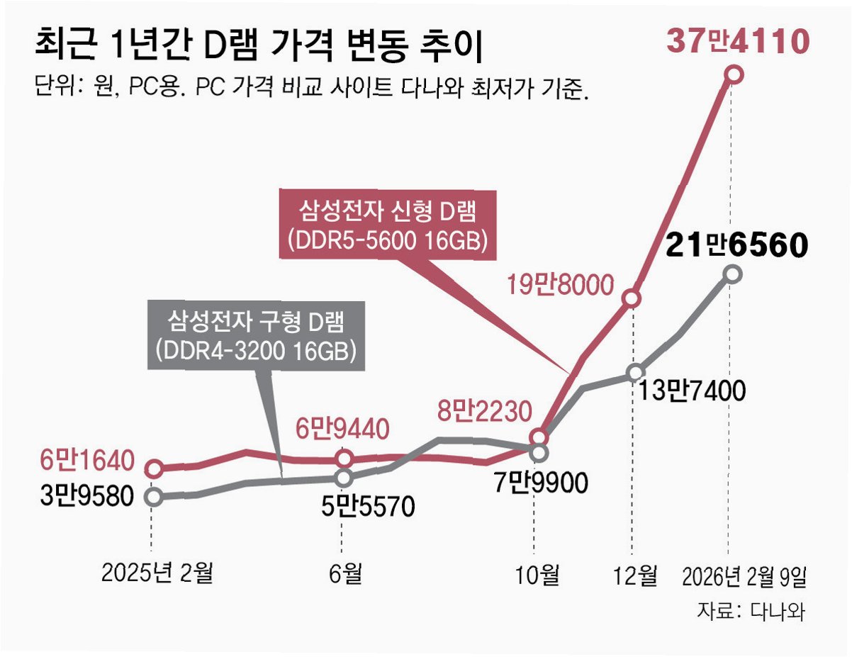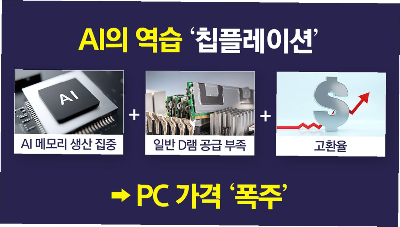 A.반도체 기업들이 수익성이 높은 AI용 메모리 생산에 집중하면서 일반 PC용 D램 공급이 줄어든 데다, 고환율 현상까지 겹쳐 가격이 폭등했습니다.