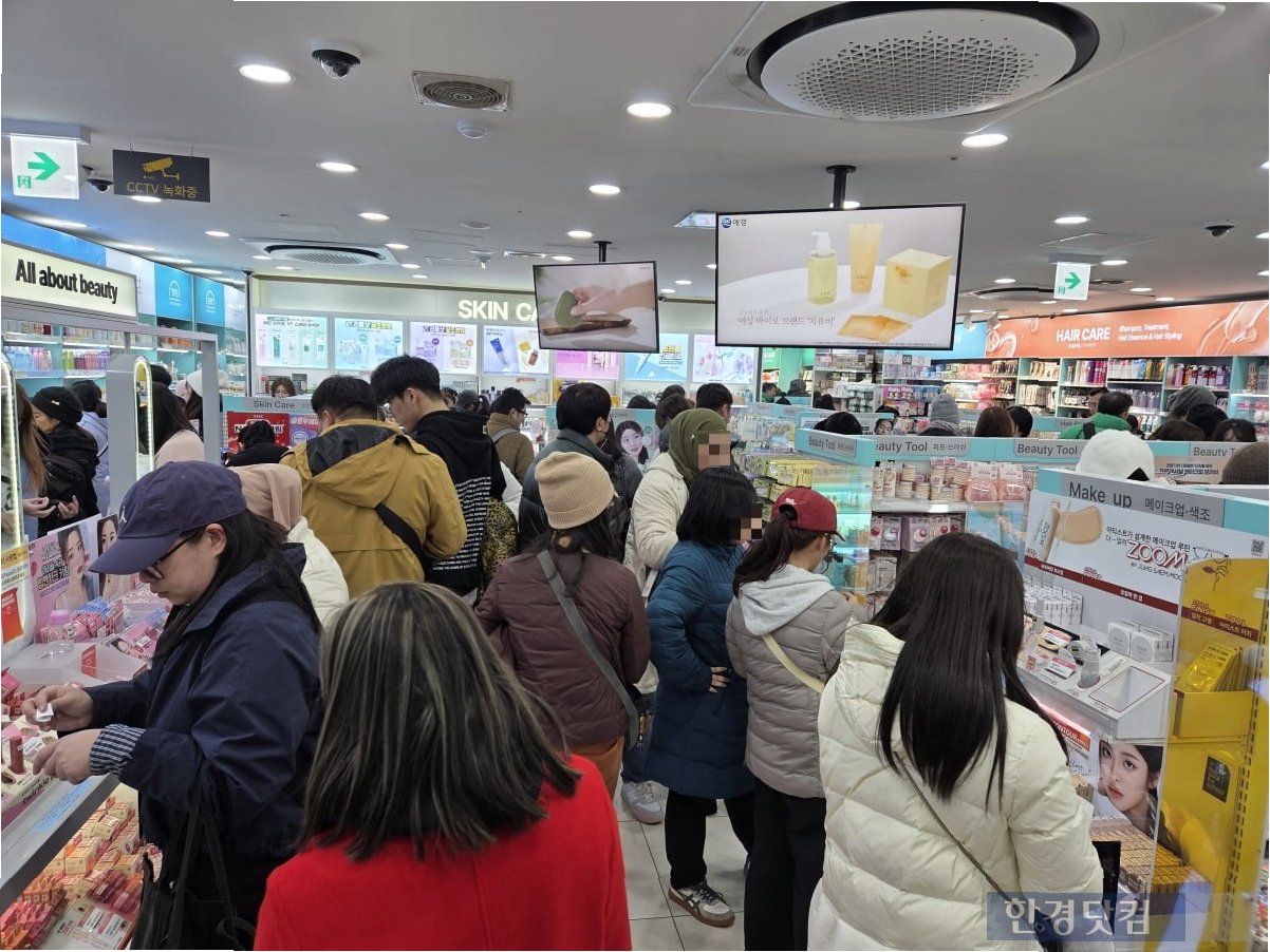 명동역 인근 다이소 매장 역시 단체 및 개별 관광객으로 인산인해를 이루었습니다. 결제 키오스크 앞에는 10미터 이상 대기 줄이 늘어섰고, 계산까지 20~30분 이상 소요되었습니다. 해외 관광객에게 인기 있는 발 관리팩, 파운데이션, 립글로즈 등 뷰티 제품 매대에는 '품절' 안내문이 곳곳에 붙어 있었습니다. 한 직원은 외국인들이 1~2개가 아닌 박스째로 구매하며, 이틀 전 들어온 물량이 벌써 동났다고 밝혔습니다. 편의점 CU와 세븐일레븐에서도 중국인 고객 매출이 전년 동월 대비 각각 35.5%, 43% 증가하는 등 가성비 채널의 인기가 뜨겁습니다.