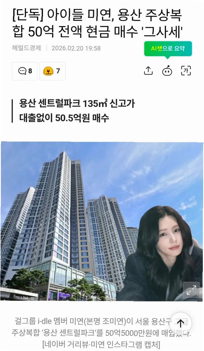 아이돌 미연, 50억 현금으로 용산 최고급 아파트 '신고가' 매입