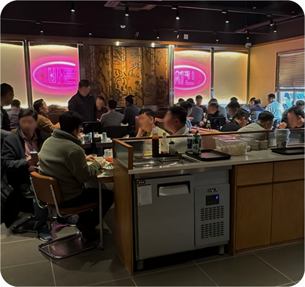바른치킨 여의도R점은 주문부터 조리, 서빙까지 대부분의 과정이 자동화 시스템으로 운영됩니다. 38평 규모의 매장에서 단 2명의 직원만이 근무하며, 관절형 튀김 로봇 '바:셰프'와 레일형 튀김 로봇 '바:R셰프'가 닭을 튀기고, 서빙 로봇 '바:서버'가 음식을 테이블까지 옮깁니다. 이는 인건비 부담과 구인난이 심화되는 외식업 환경에서 기술 중심으로 주방 구조를 바꾸려는 시도입니다.