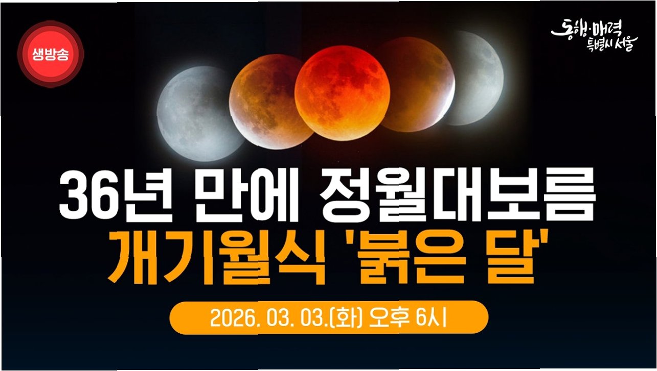 36년 만에 찾아온 정월대보름 개기월식, '블러드문' 현상을 관측할 기회가 주어졌습니다. 부분식부터 개기식, 그리고 다시 보름달로 돌아오는 전 과정을 지켜보며 우주의 신비를 느껴보세요. 날씨 변수가 있지만, 맑은 하늘 아래라면 잊지 못할 밤이 될 것입니다.