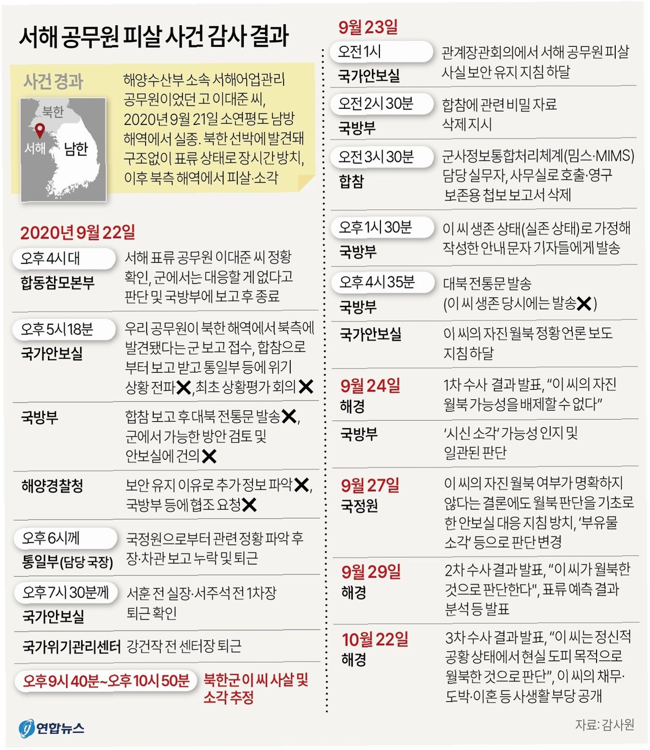 하지만 2022년 윤석열 정부가 들어선 뒤 해경은 정황과 추정을 넘어서는 월북 증거는 확보하지 못했다며 자진 월북으로 단정할 수 없다는 수사 결과를 발표했다. 해경의 수사 결과 발표 이후 윤 전 청장은 감사원 감사와 검찰 수사를 받아왔다.