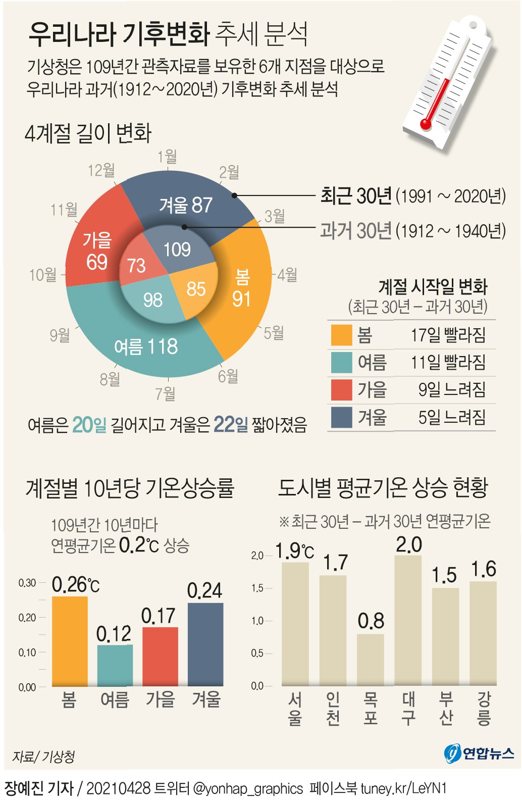 오늘 낮 기온은 서울 21도, 대구 22도, 창원 19도까지 오르는 등 평년보다 훨씬 따뜻한 봄 날씨를 보이겠습니다. 현재 서울 7.6도, 대구 7.2도로 아침 기온도 크게 높지 않아 활동하기 좋은 날씨가 예상됩니다.