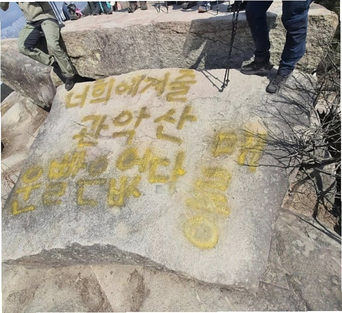 관악산 마당바위, '운' 조롱 낙서로 훼손돼 충격