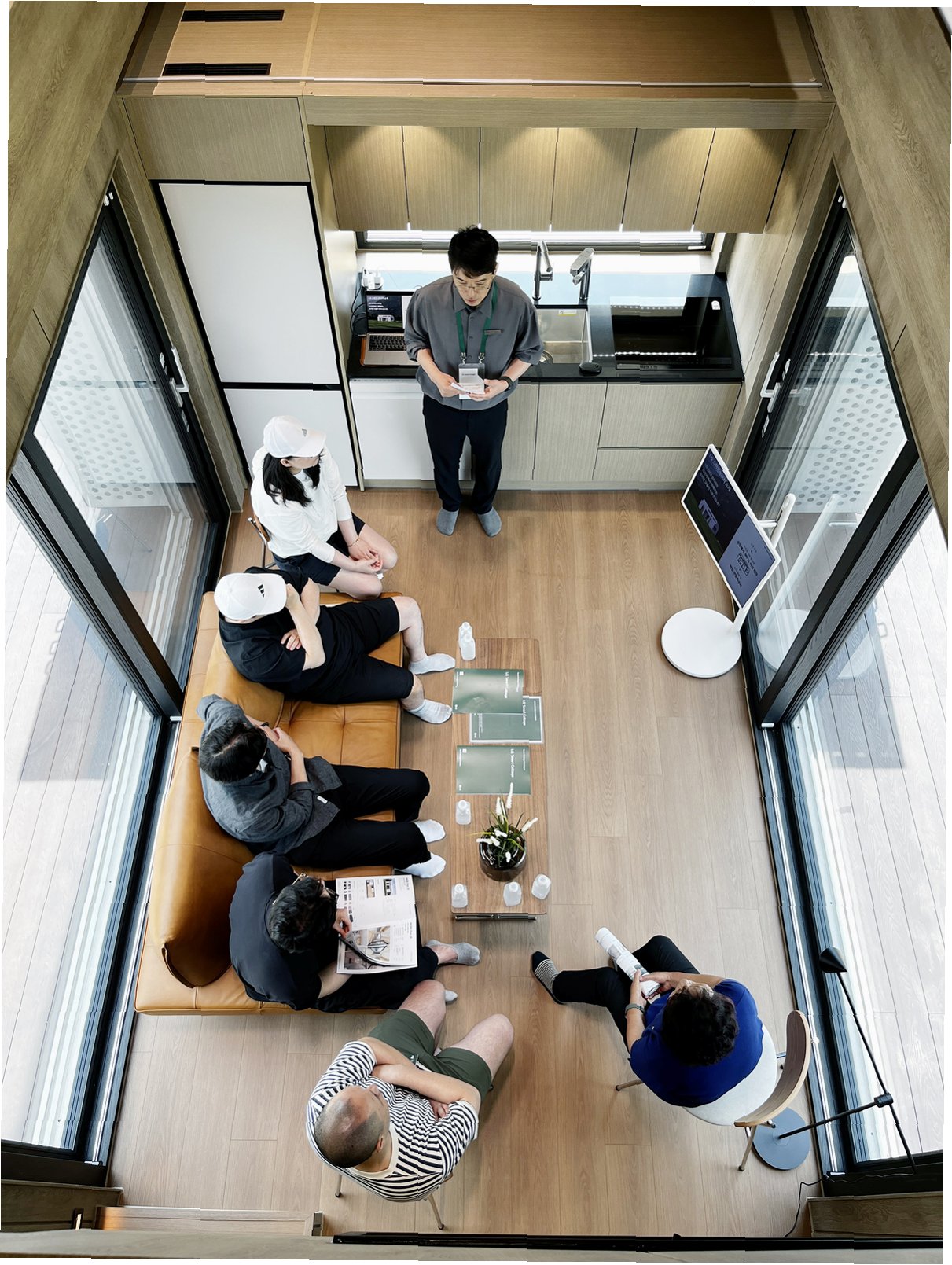 죽산마을에 들어선 스마트코티지는 세련된 외관으로 시선을 사로잡았습니다. 4가지 모델을 직접 볼 수 있었는데, 마치 도심의 신축 오피스텔을 옮겨 놓은 듯한 깔끔한 인테리어가 돋보였습니다. 5도2촌을 위한 별장이나 협소주택을 원하는 사람들에게 최적의 선택이 될 것입니다. 특히, '듀오 플러스 45'와 '듀오 맥스 45' 모델은 2층 구조로 공간 활용도를 높였으며, 다양한 옵션을 통해 개인의 취향에 맞게 맞춤형 설계를 할 수 있다는 점이 매력적입니다. LG전자는 스마트코티지를 통해 단순히 집을 짓는 것을 넘어, 라이프스타일을 제안하고 있습니다.