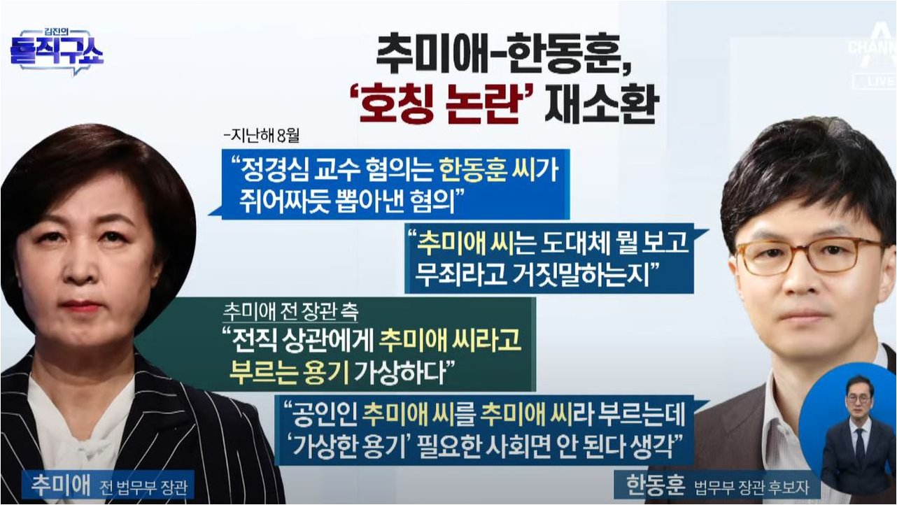 Q.추미애 의원과 한동훈 전 대표, 왜 이렇게 격하게 대립하나요?