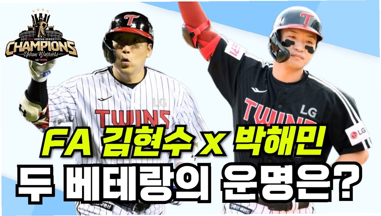 외야 수비의 달인 박해민과 한국시리즈 MVP 김현수도 두 번째 FA 자격을 얻어 LG와 재계약을 논의 중입니다. 차명석 단장의 발언에 따라, 이들의 거취에도 관심이 쏠리고 있습니다.