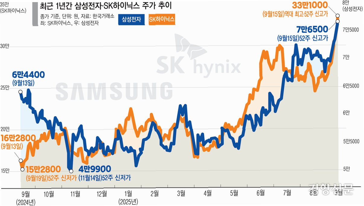 반도체 대장주, '10만 전자'·'60만 닉스' 무너지다