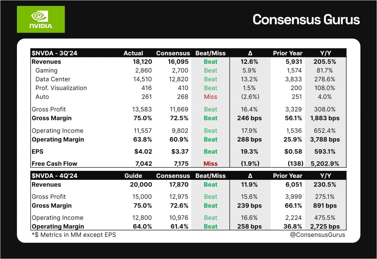 운명의 엔비디아 실적 발표를 앞둔 19일(현지시간), 모처럼 인공지능(AI) 핵심 기업들의 주가가 상승했습니다. 그리고 뉴욕 증시 마감 후 발표된 엔비디아의 10월 분기 실적은 역시 모든 예상을 뛰어넘었습니다. 엔비디아는 애프터마켓에서 한때 5% 뛰었습니다. 이른바 'AI 버블론' 우려가 드디어 잦아드는 걸까요? 사실 최근 주식, 비트코인 같은 위험자산 가격의 하락을 AI 버블론 때문이라고 단정 짓기엔 찜찜한 점이 많았습니다.