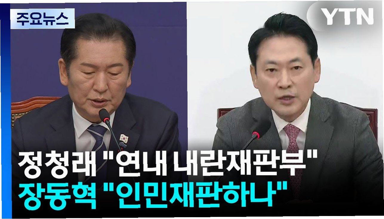 정청래 더불어민주당 대표와 장동혁 국민의힘 대표가 내란전담재판부 설치를 두고 날카로운 공방을 벌였습니다. 정 대표는 신속한 내란 청산을 위해 내란전담재판부 설치를 거듭 강조하며, 연내 설치를 약속했습니다. 반면, 장동혁 대표는 인민재판을 거론하며 민주당을 비판했습니다.